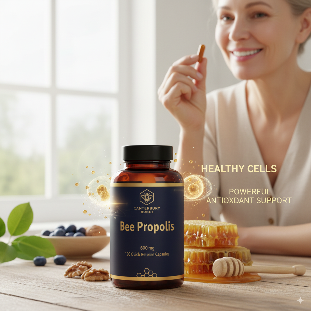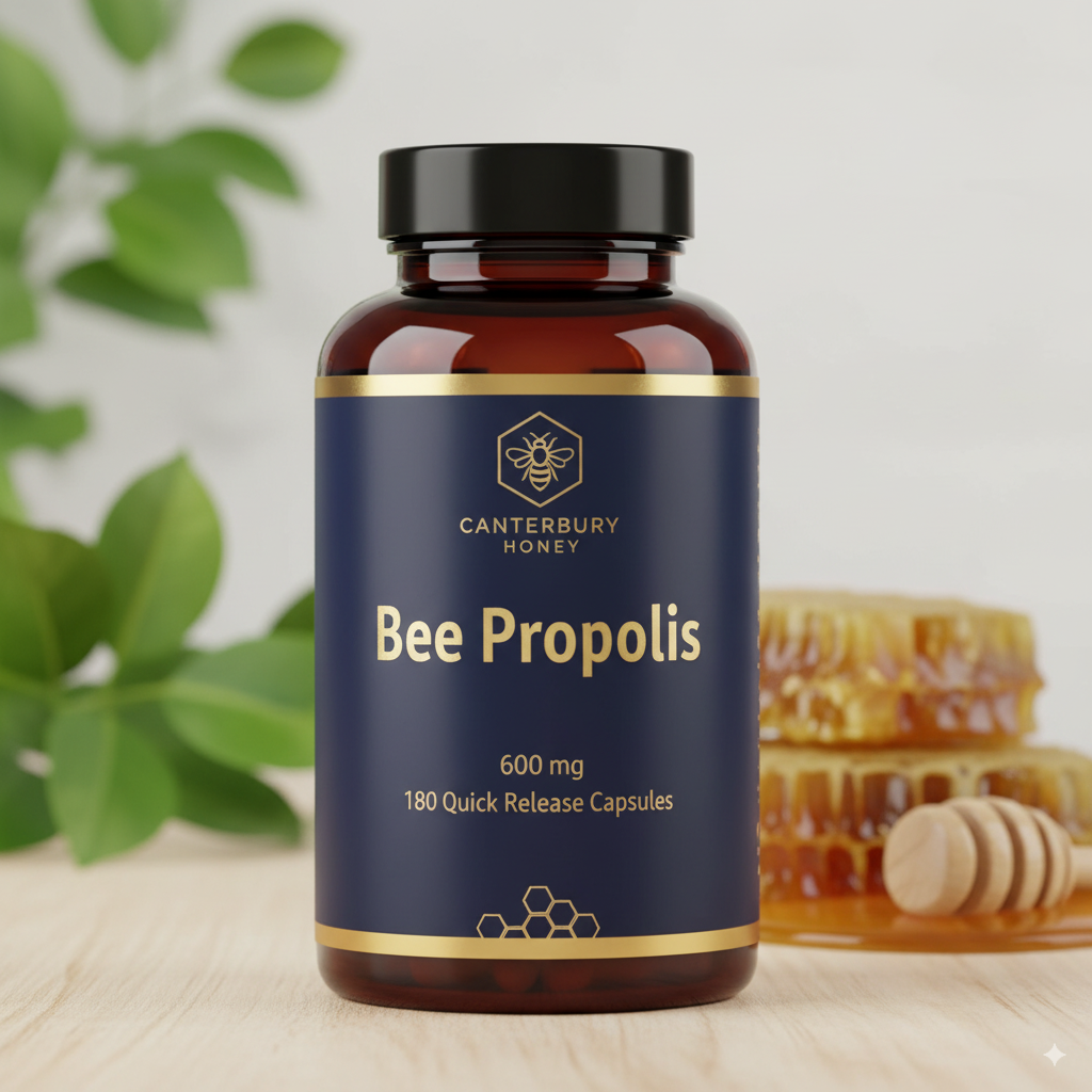 Introducing Canterbury Honey Bee Propolis, your daily dose of natural defense. Sourced from the pristine landscapes of New Zealand, our high-potency formula delivers the remarkable benefits of bee propolis in a convenient, quick-release capsule.